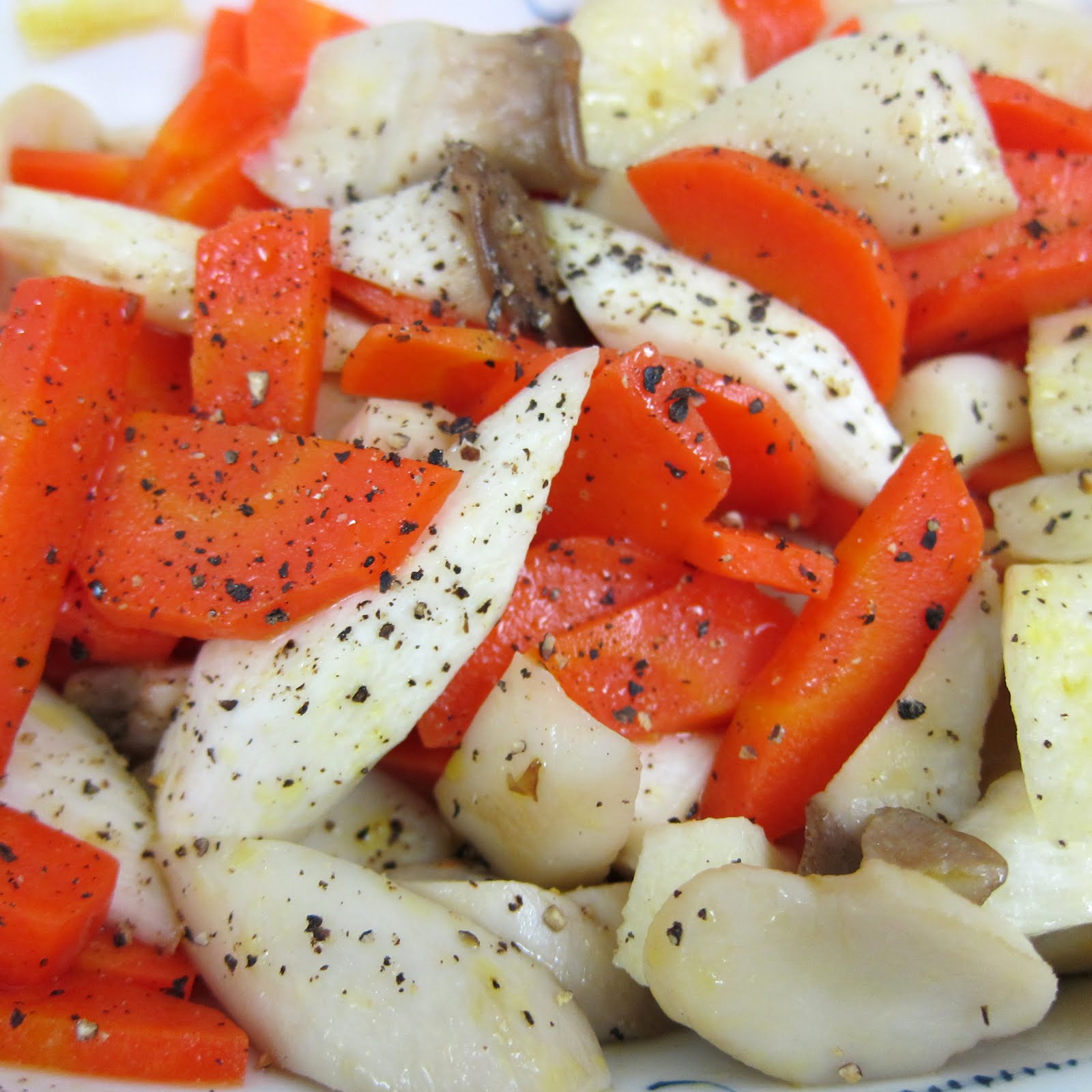 蘆筍+筊白筍+肉片 紅蘿蔔+筊白筍+杏包菇