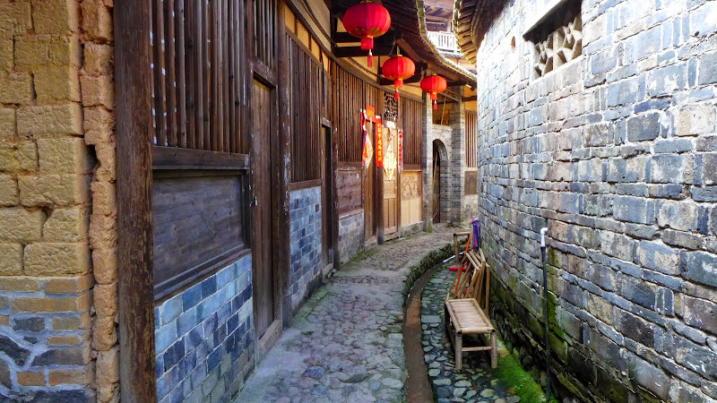 在承啟樓內部的小巷子穿梭,