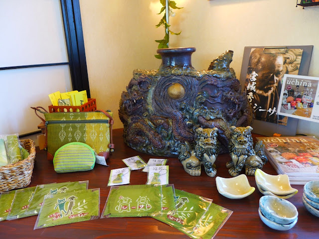至少不用抱著小孩走路。非常靠近斎場御嶽的地方,還有另一個看起來像是原本斎場御嶽的停車場,不讓車子停進去,不知道是為什麼原因呢?要讓大家停在路口外面的停車場。不過,後來想想,如果裏面的停車場可以停,而我們不用走這一段路的話,我們就不會經過路邊的喫茶店 海のイスキア,也就不會有和這間cafe的美麗相遇了。