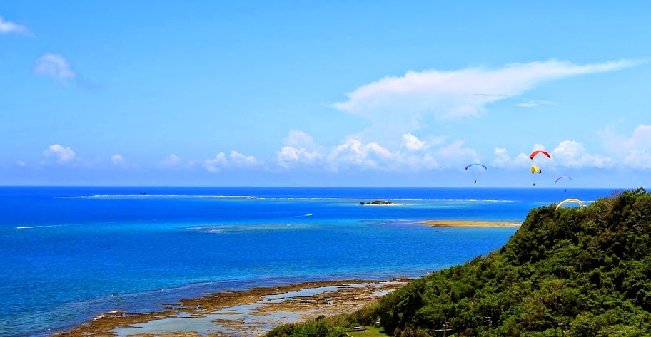 走一走有可以眺望海景的地方,看到很多飛行傘