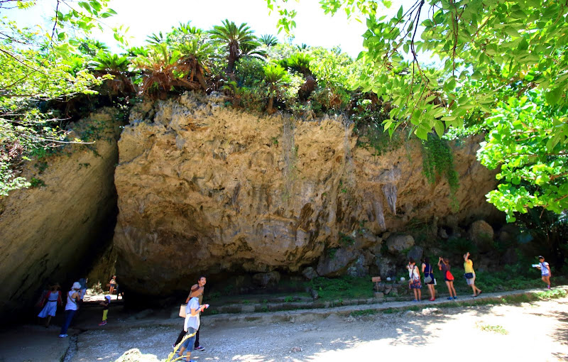 車子要彎進通往斎場御嶽的路的時候,就被守在路口的工作人員擋了下來,要我們去停在路口轉彎處的停車場,那邊也是賣斎場御嶽的票的地方。不過路口那個停車場很小,已經滿了。停車場的指揮人員又要我們去停 第二停車場。第二停車場真的超級遠,我們差點想要放棄斎場御嶽 這個景點了。後來老公決定先開車載我們回到賣票那裏,自己再去停車。