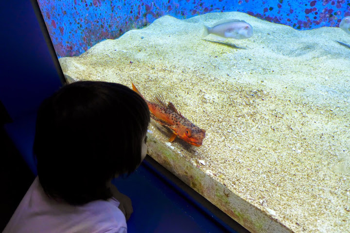 不過有一個失策,就是深海區的地方,那時候已經有點累了,再加上人好多,所以我們走的有點快,沒有仔細看。後來阿公給她看照片的裡發亮的魚,女兒因為當時沒有看到,所以一直吵著要再去沖繩看會發亮的魚。