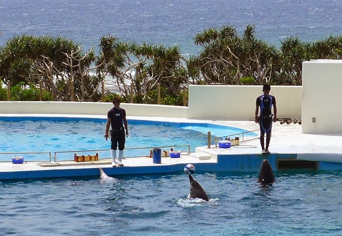 海豚表演頂球,搖呼拉圈 蠻可愛的