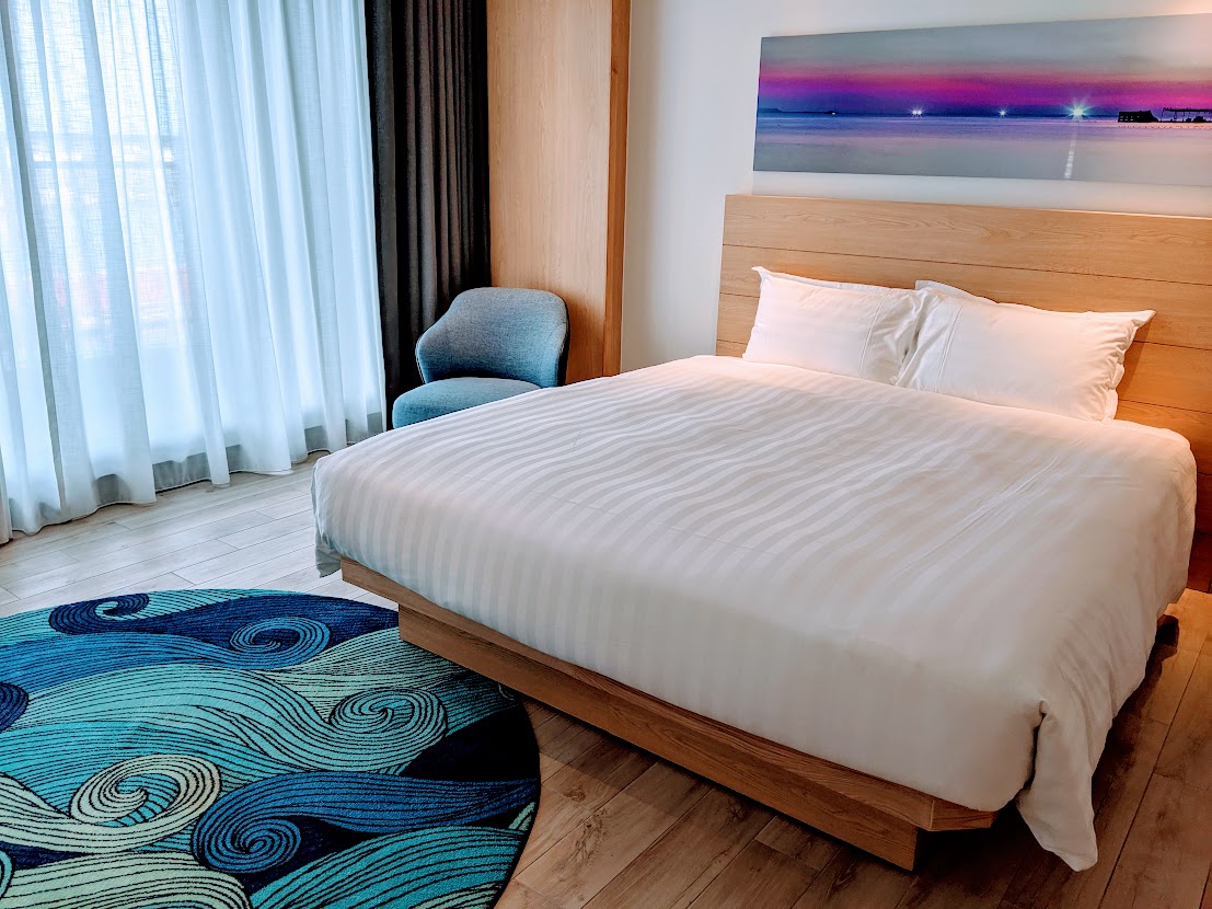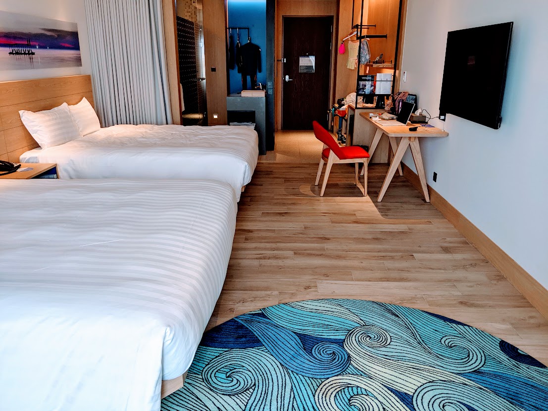 [澎澄飯店]飯店設施很完整,有頂樓無邊際泳池,也有遊戲室。旁邊就是購物中心和影城,裡面有Whiskey博物館,各種餐廳。大推裡面的GO STAR星探索極限運動場,可以體驗攀岩和各種有趣刺激的設施。(先收藏,等疫情過後再去玩一波喔⛱️)