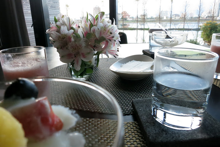 第一天晚上算是睡得不錯。不過女兒有點早就起床了。一大早拉開窗簾,水田映著天空的顏色十分漂亮。