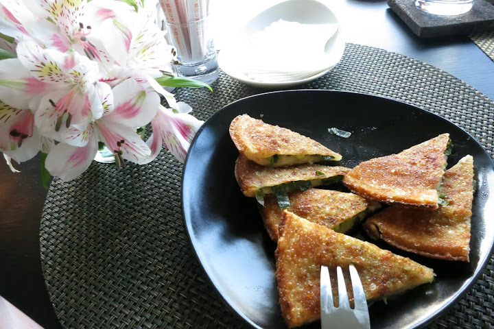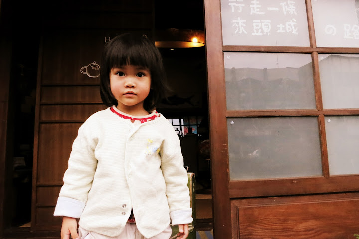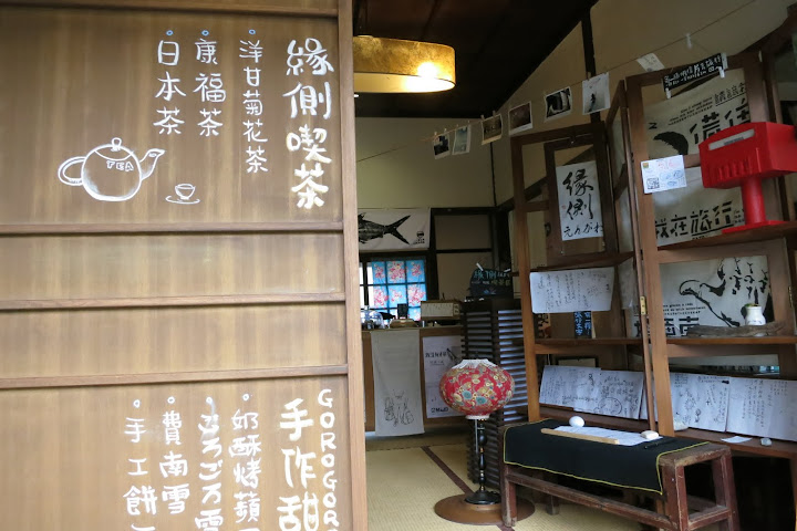 這間緣側喫茶看起來也很悠閒,不過帶著小小孩的我們可不想破壞寧靜,並沒有進去喝茶,而是在外面買了蔥油餅吃。停車場那個要排隊的蔥油餅攤,真的很好吃。蔥油餅阿公還順便負責顧停車場,我們要付費時沒有零錢可以投幣繳費 (繳費機竟然不接受紙鈔耶),他還來幫忙換零錢給我們。