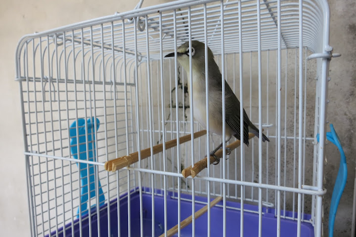 後面的小庭院裡有養著一隻可愛的小鳥,