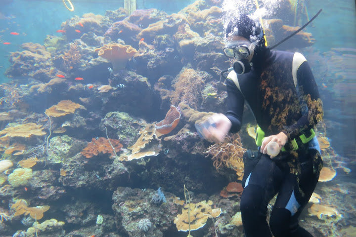 我滿懷期待著想要看到女兒看見漂亮的水族箱和魚的驚奇表情,