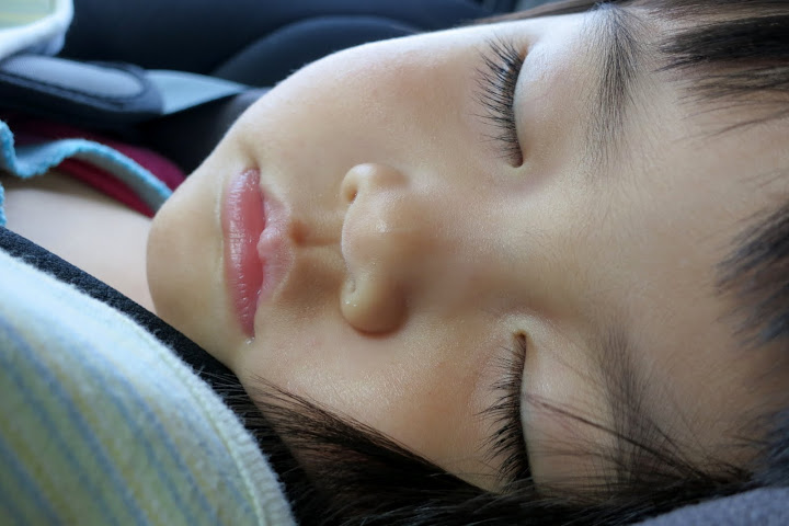 電力用完,一上車喝完奶立刻睡著的小寶貝。