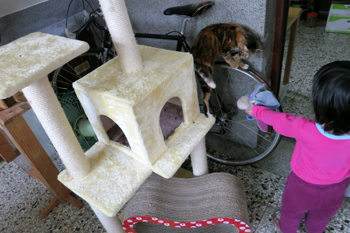 所以就上演小女孩一直追著貓咪跑來跑去的戲碼。