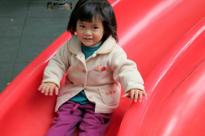 後來就讓她在附近的公園盡情地玩溜滑梯。
