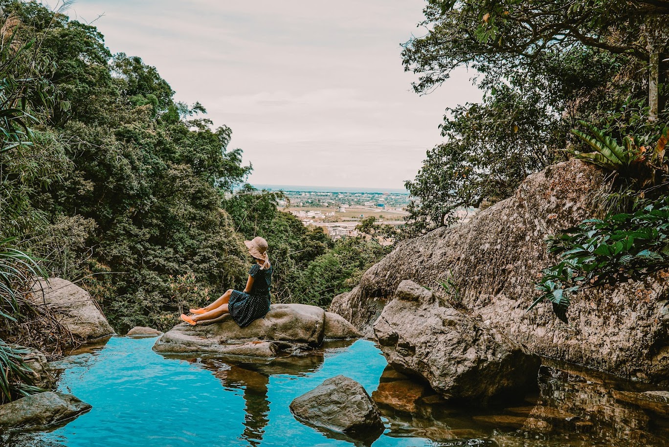 輕鬆走十分鐘就可以來到瀑布上方,有清澈的溪水可以玩,遠眺蘭陽平原和龜山島海景,還有小魚兒會來親你。