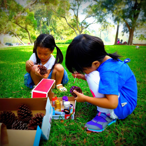 這次順便帶來讓小朋友們一起彩繪松果。 🙂