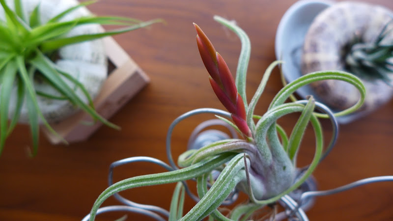 5/15 越來越紅,葉子也越來越捲曲。離花序長出來已經超過一個月了。我想 她像小王子的玫瑰一樣,要費心裝扮好自己,才要開花。
