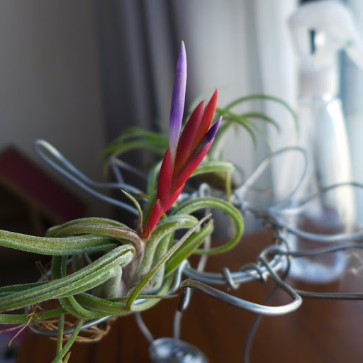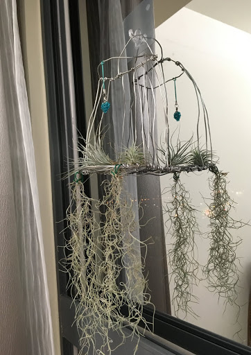 用鋁線弄了一個新的架子,比原本掛高一點,這樣松蘿才有空間變長。