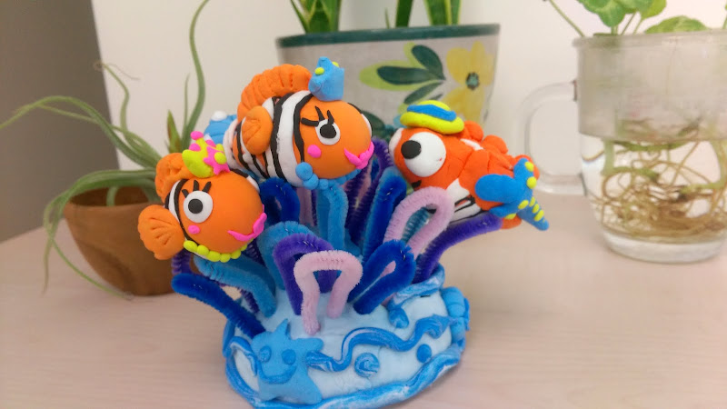 和女兒一起捏輕黏土,應該很容易看出來哪些是女兒捏的或加上去的配件 😛