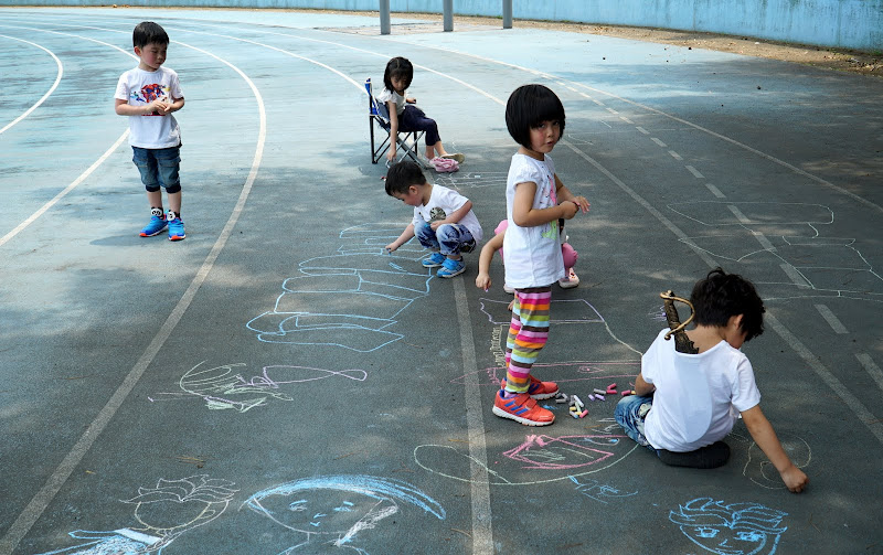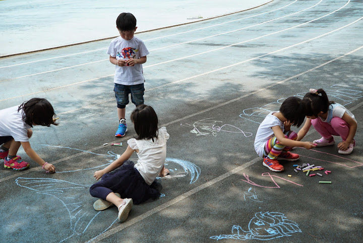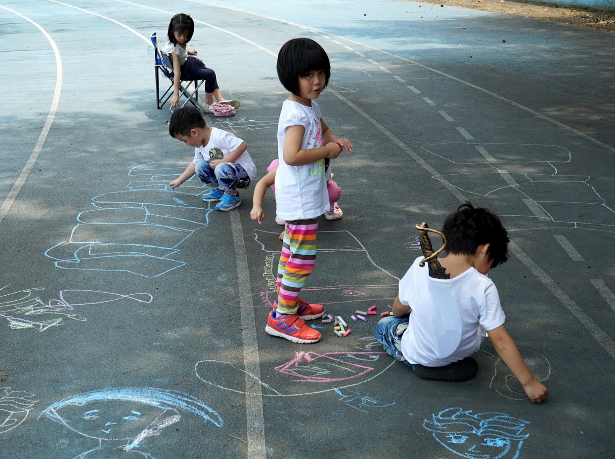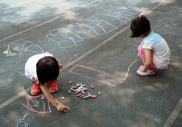 可以讓小朋友用粉筆在地上畫畫