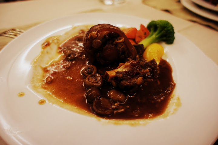 主菜二: 磨菇牛尾 (5顆星)。一樣是非常好吃,入口即化。(一樣是忘記拍照就開動了 XD)。 如果點的是這道主菜的話可以先不要把麵包吃光,留一點下來配主菜。:P 我下次來也還要吃這個。 (反正至少會有兩個人一起來嘛 :))