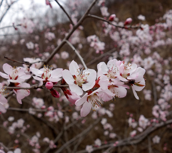 在前往長城腳下的公社的途中,滿山的桃花開得讓我心花怒放。