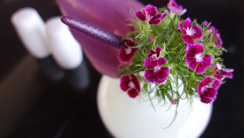 餐桌的佈置是用真的植物和鮮花,這一點值得稱讚