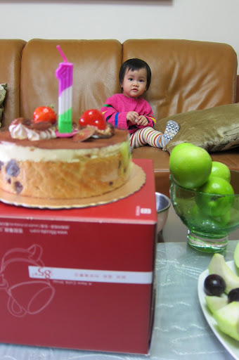 不甘心的媽咪把東西放回去之後,又再試了一次。結果,竟然還是衝去拿那顆球和湯勺。(她爬超快的,相機來不及開機,沒拍到她衝過來的樣子) 完全對別的東西視若無睹。後來好不容易拿了印章。恩,好吧,妳就當球團的總裁好了。不用當球員 (我不想讓女兒去打棒球啊),媽咪的心情稍微平復了一點。XD