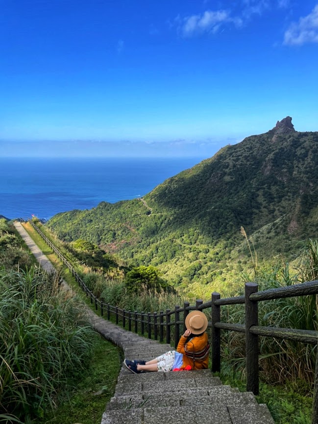 報時山步道,步道只有166公尺,到達觀景平台即可眺望水湳洞陰陽海無死角的壯闊山海景,號稱是全台最短且cp值很高的海景步道。這個報時山步道和下面介紹的天車間遺址以及六坑斜坡索道,三個景點是一起的,導航:勸濟堂停車場就可以了。