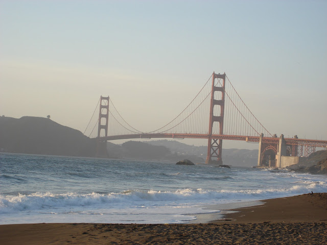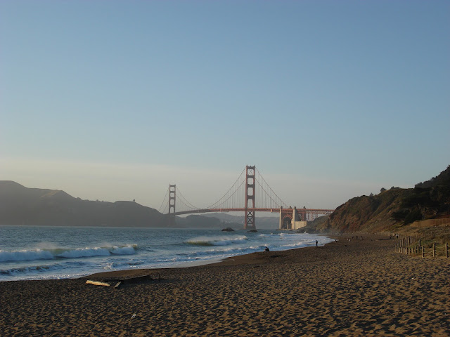 我超愛日落時分的這個沙灘,不但可以看到整座橋,還可以看夕陽。
