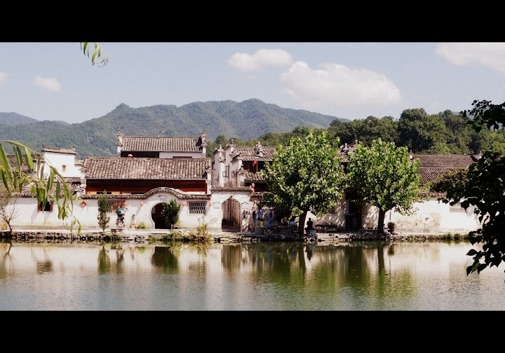 黑瓦白牆的徽式建築 配上水