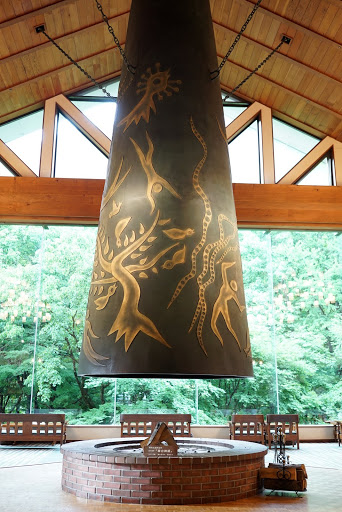 對於奥入瀬溪流旅館的第一印象,一定會是這個岡本太郎的作品「森の神話」。聳立於引進大片綠意的落地窗之前,充滿了神秘的感覺,這座青銅做的fireplace會立刻吸引所有旅人的目光。官方網站上這樣寫著:【溪流湍急優美,碎石在流水滾動流去;樹木高聳參天,野生動物一閃而過,鳥兒紛飛歌聲此起彼落。下方有蘑菇展開笑臉,頂端有戴冠的鳥國王優雅飛舞,人類與森林的妖精共舞在此。】