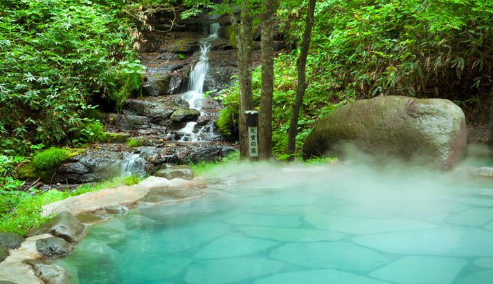 露天風呂 八重九重之湯 (image from official site)。這是奥入瀬渓流旅館提供的露天風呂,有分男生和女生和混浴三種使用的時段。要從西館搭旅館的接駁車,如果是作為女湯使用的時段,接駁車就只會接女生上車,反之亦然。到達之後,感覺有一點點在野外秘湯泡溫泉的感覺,不過維護得很好,比野外的乾淨,又有提供毛巾和換衣服的地方 (不過沒有淋浴的設施)。在這個露天風呂泡湯,可以一邊欣賞著小瀑布一邊泡湯,很享受呢。而且我們去泡的時候,除了我,媽媽和女兒,只有另外兩個客人,人很少且清幽的環境,很悠閒舒適。