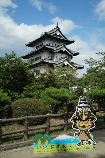 參觀完藤田記念庭園,我們決定用走的到弘前城的天守閣,因為藤田的工作人員建議我們可以散步過去,他說不會很遠,我們也不想重新找地方停車,就決定用走的。不過事實上,穿過弘前城旁的弘前公園,走到天守閣,帶著小孩走其實算是蠻遠的。奇蹟的是,女兒居然全程走完了。多虧了阿公跟她講的城堡護城河的故事,然後我牽著她的手很認真的跟她玩假扮的遊戲,所以她沒有跑去找爸比抱抱 XD