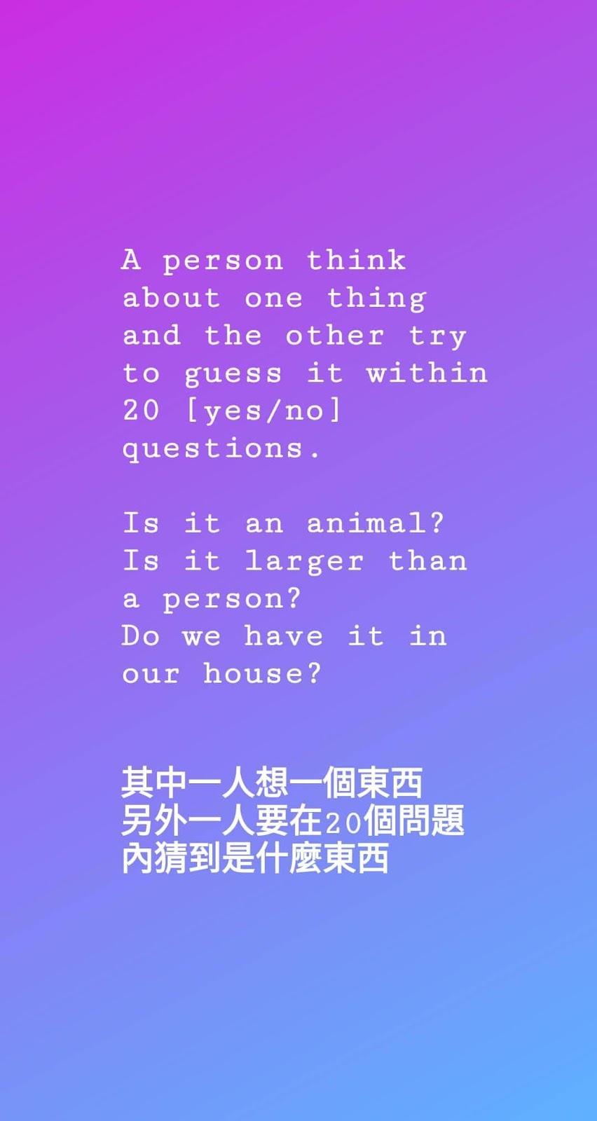 女兒花了15 個問題猜中