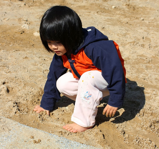 結果竟然跑去玩沙子 Orz