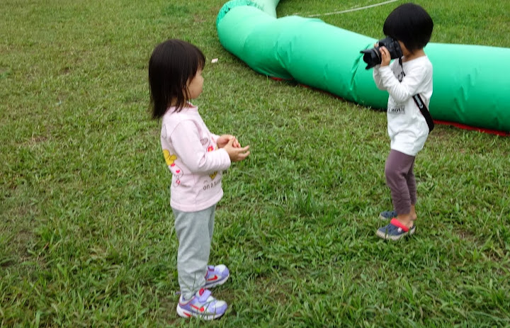覺得小小孩拿大相機看起來很酷。