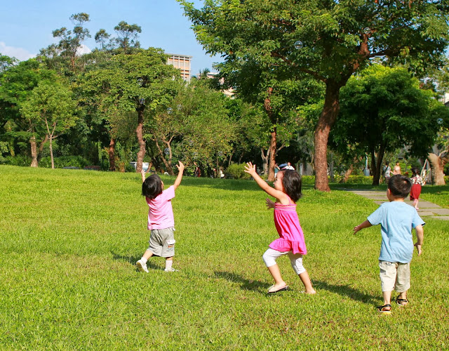 藍天+陽光+草地+小朋友