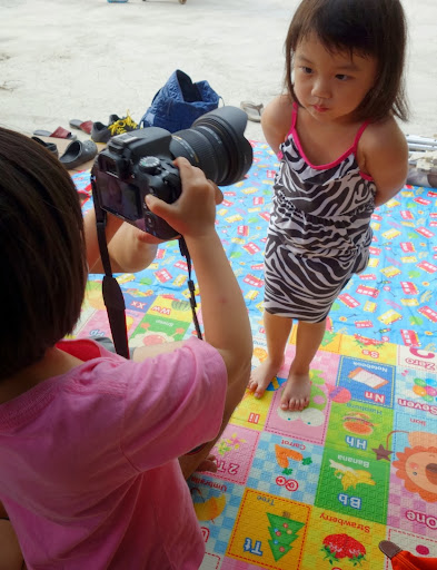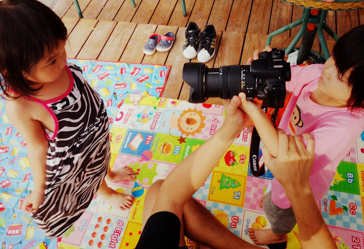 老公最近很愛讓女兒拿他的大相機,