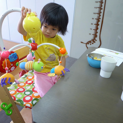 她自己去櫃子裡把以前娃娃床的音樂鈴挖出來 XD