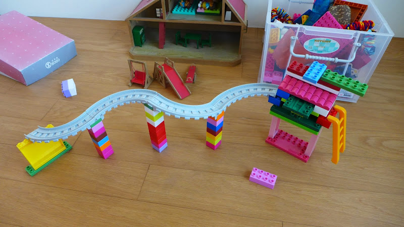 有一陣子沒拿出來組的軌道,她自己會組了。