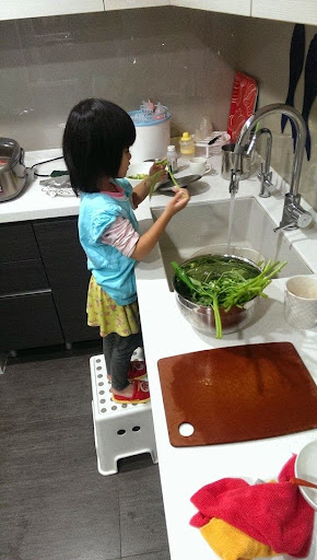 但看她切花椰菜和木耳看得我心驚膽戰,