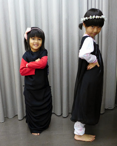 我就把已經好久沒有穿的黑色小洋裝拿出來給她們穿 XD