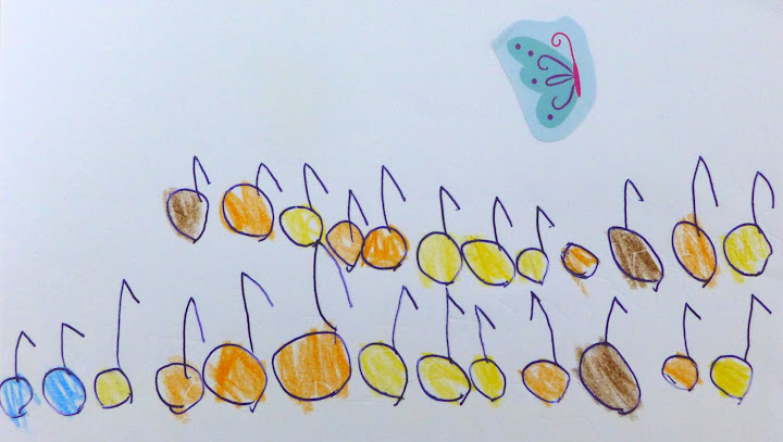 某天她居然自己在紙上劃下樂譜