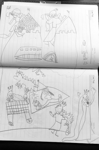 老師應該是給他們一人一本筆記本打發時間