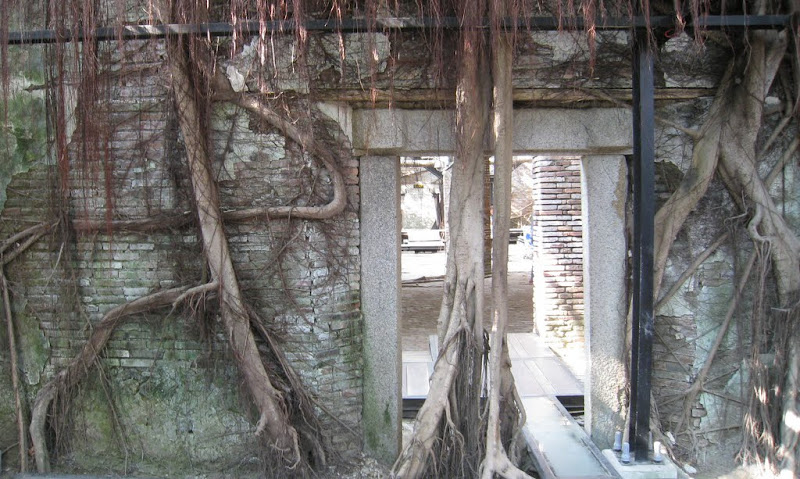 和榕樹共生的老磚屋,原本是原本是德記洋行的倉庫,後來被榕樹佔據了。其實,有一點Angkor Taprohm的fu, 只是樹木換成榕樹,然後沒有雕刻。榕樹的鬍鬚的確是蠻詭異的,但是是漂亮的詭異,地上的光影也很吸引人。從樹屋延伸出去的空橋在藍天下感覺很棒。從另外一個小門出來之後就是德記洋行,洋行旁邊還有一個整修過的老建築,門口寫著”因鹽玖定”,舊房子裡陳列的是連外行人也會忍不住被吸引的美麗書法作品。當然,安平的巷弄裡還有無數的驚喜,上次的旅行,印象最深的是台鹽舊宿舍,東興洋行,海山館和胭脂巷。去樹屋的路上則是順便參觀了蚵灰窯。