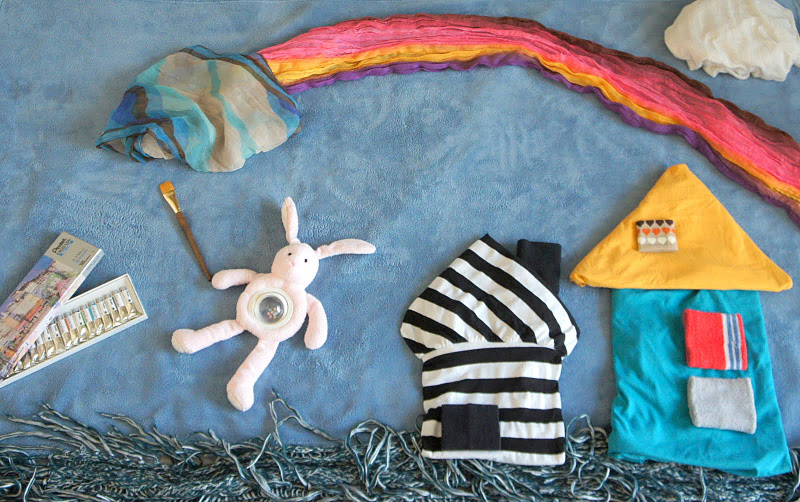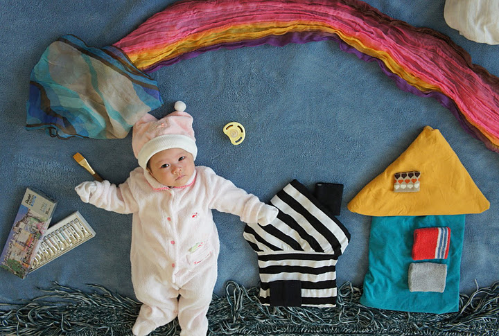 [當時的筆記: 本來的構想是要讓她趴著然後拿著畫筆畫彩虹,