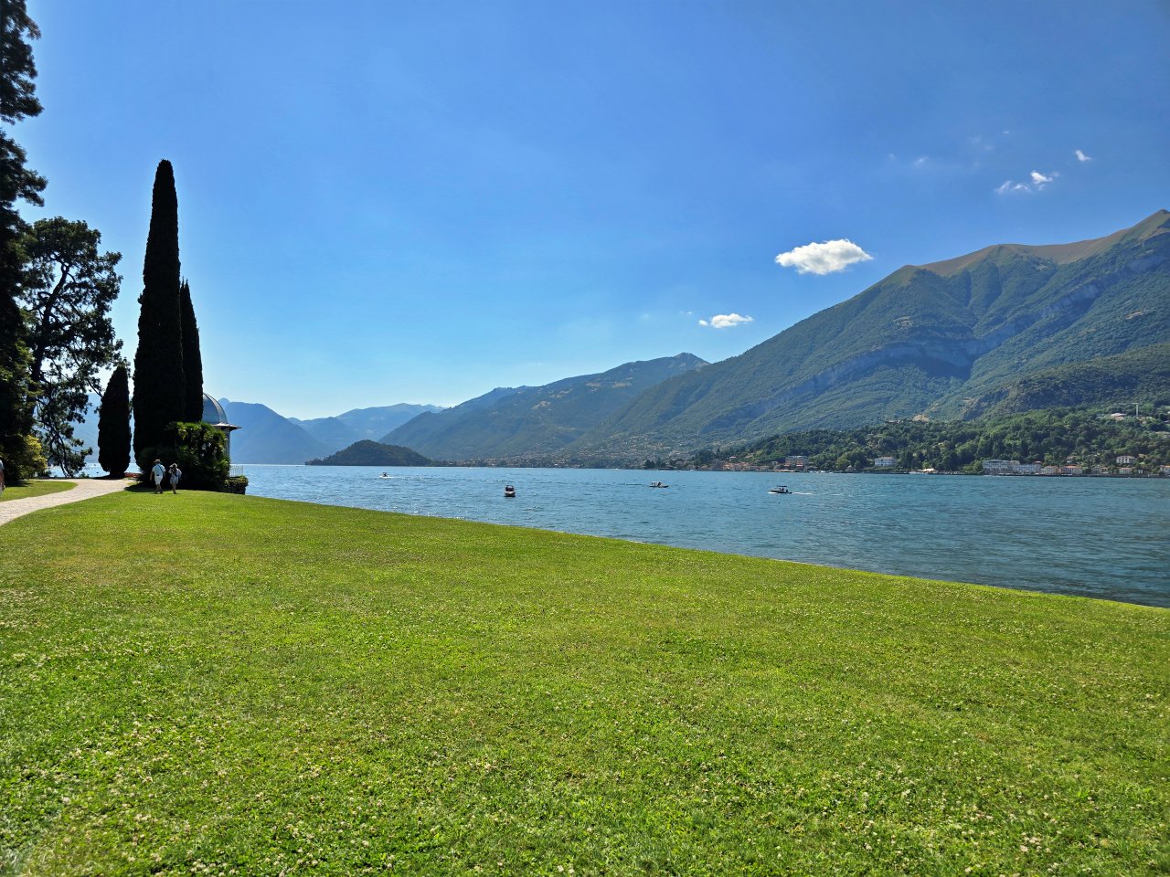 梅爾齊花園有許多片廣大的大草坪,和瓦倫納 Varenna 的 Villa Monastero 和 Villa Cipressi 依地勢而建層層疊疊的景觀很不一樣。這裡是比較開闊的感覺,而Varenna的那兩座villa則是比較有層次感。