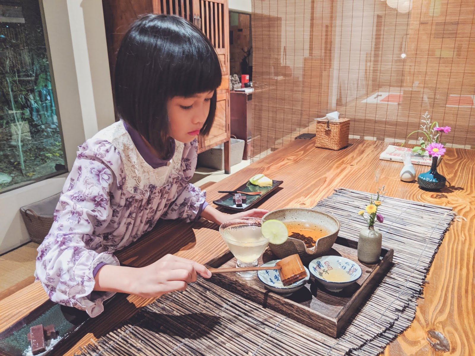 餐廳布置得很漂亮,中式和日式的禪風元素相融合
