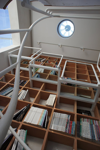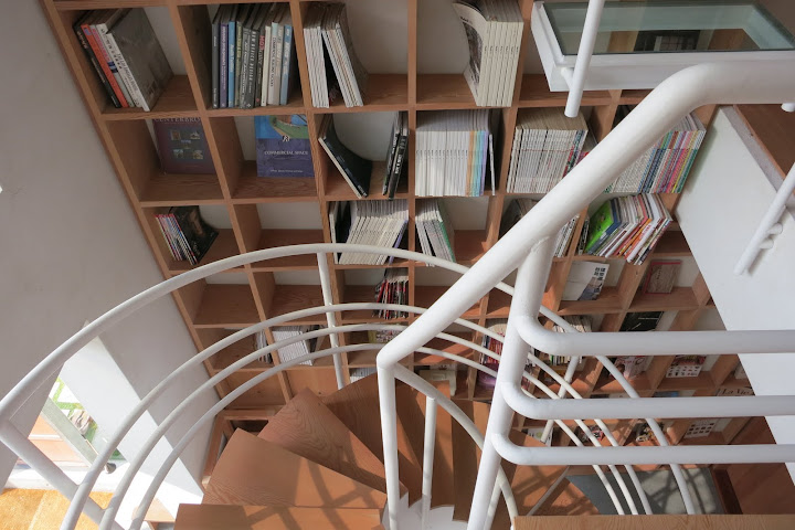 旋轉梯旁 是一整面的書牆