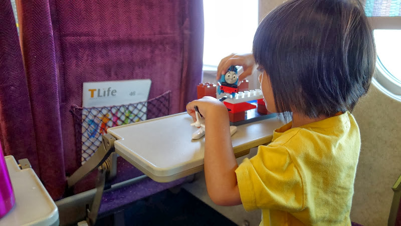 坐車時又把積木拿出來玩。另外我到這次才發現高鐵的一項超貼心的服務,就是可以把書帶上車,到站之後再還書。之前都沒注意到親子閱讀區的書是可以帶上高鐵的,要上車前還匆忙叮嚀女兒把書放好。現在才知道可以把書帶上高鐵悠悠閒閒地看,到達目的地之後再放回還書箱就可以了,超棒的。