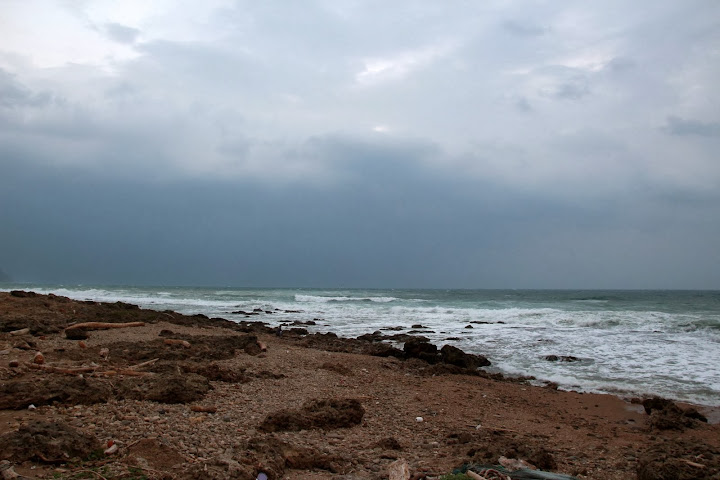 民宿外就可以到達海邊的潮間帶,沒有想像中那麼美好。雖然有很多貝殼,可是也有許多雜物,像樣拖鞋,魚網等等的東西。漂流木也很多。