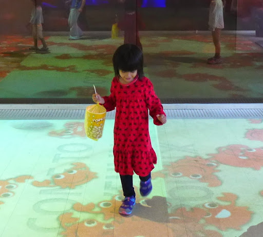 一進大廳就看到投影在地上的螃蟹,可以讓小朋友奔跑好一陣子。 XD